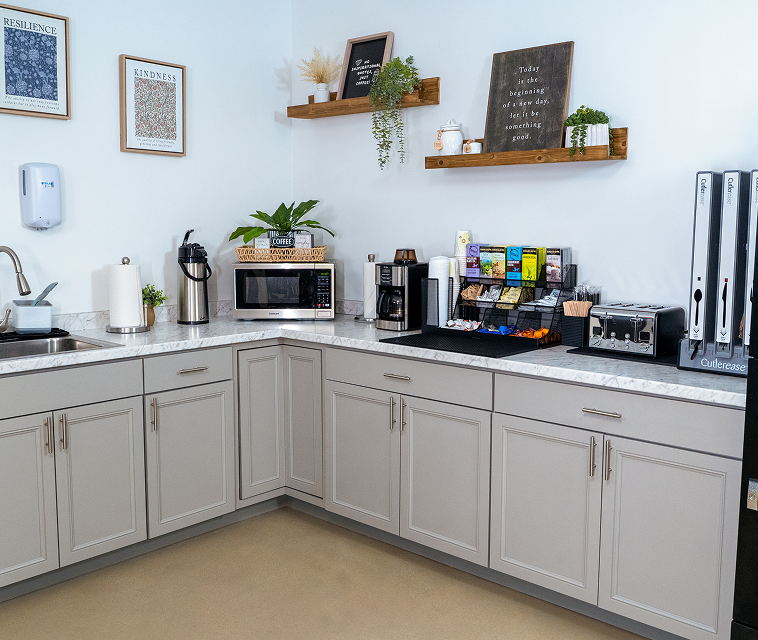 Our holistic approach to treatment encompasses all parts of the recovery process, including the relaxing aesthetics of our modern facility. Spaces are adorned with serene artwork, clean lines, and comfortable seating.